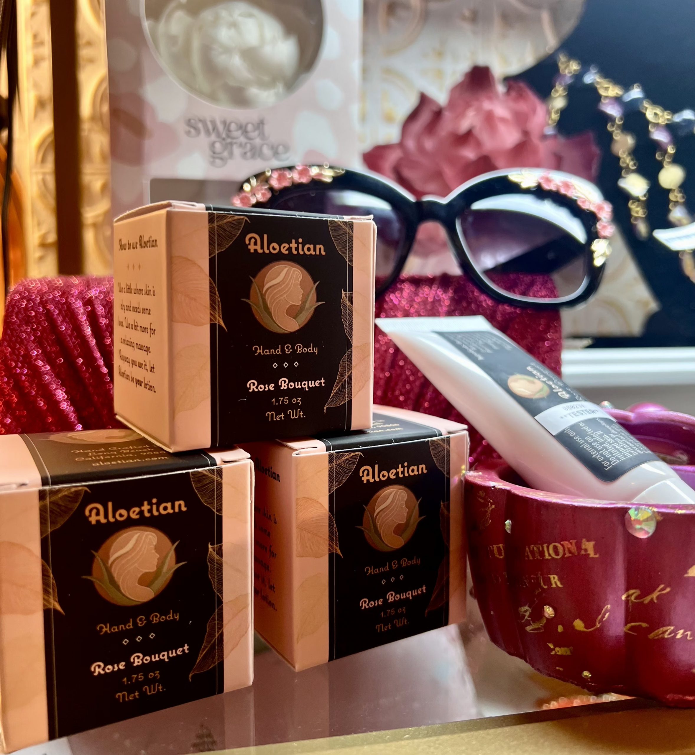 Aloetian is available in Rose Bouquet. A floral arrangement of Rose, Plumeria, and Lavender essential oils.