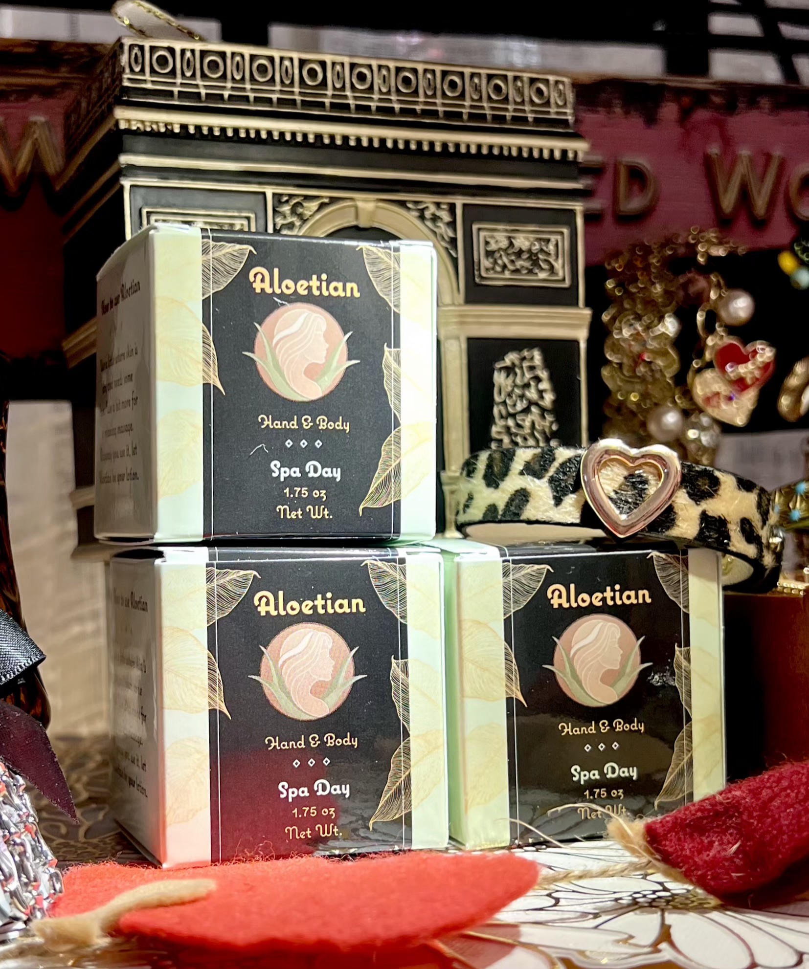 Aloetian is available in Spa Day. A refreshing scent of Eucalyptus, Orange, and Spearmint essential oils.
